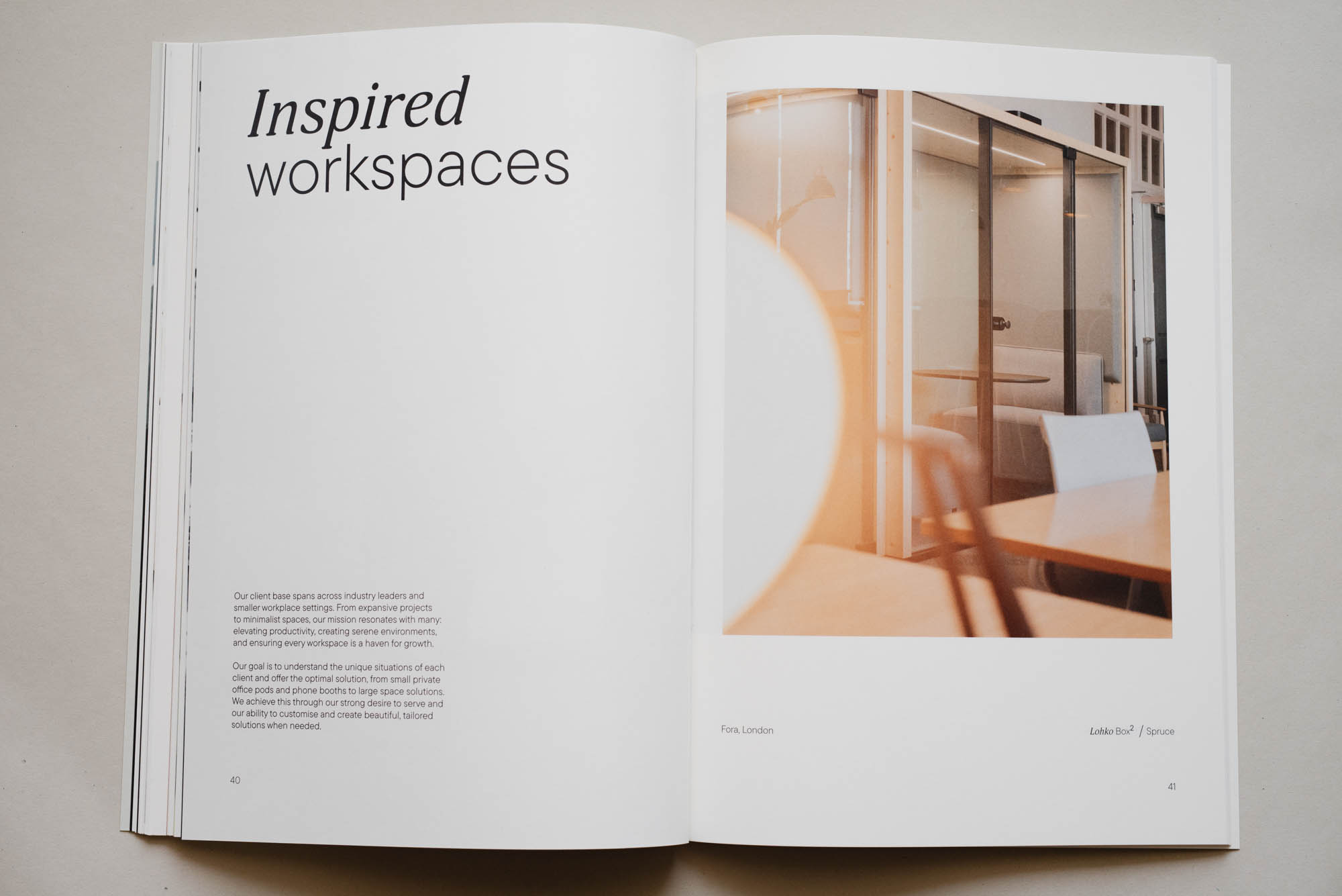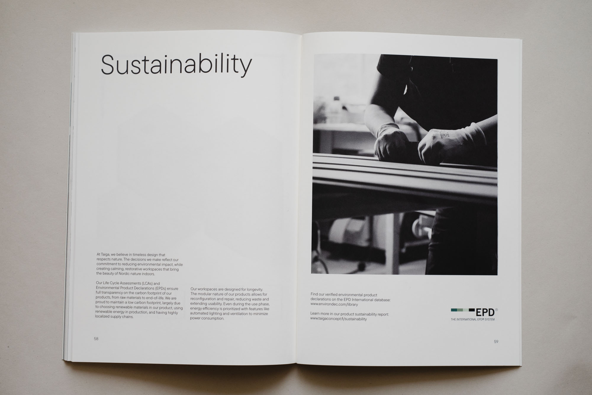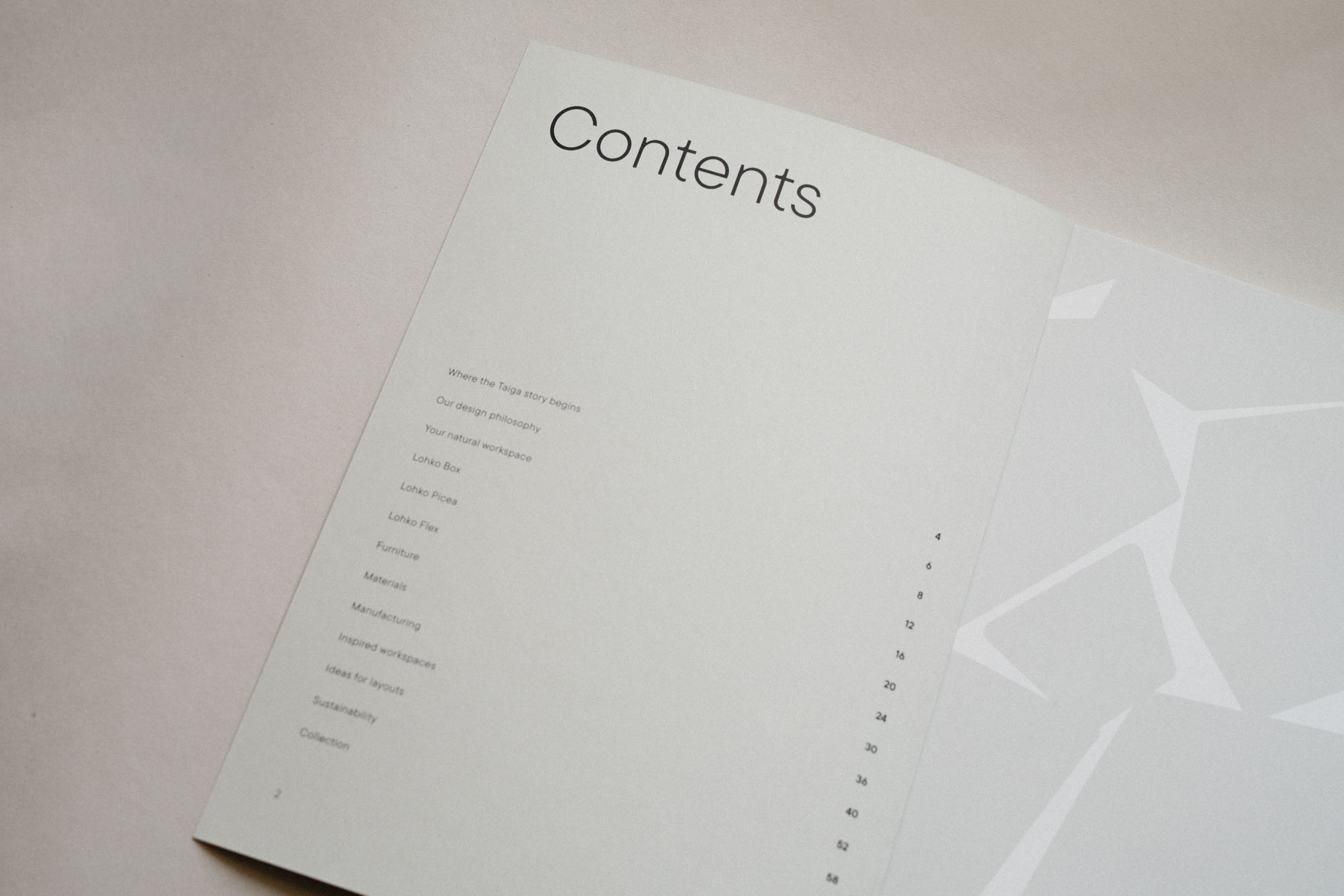 The 2025 Taiga Lookbook and Catalogue reflect a fresh, minimalistic visual identity designed to align with Taiga’s brand values of timeless design and natural simplicity. Developed through two curated photoshoots, the materials showcase the full product range — from Lohko workspaces to materials and layouts — captured in real environments to emphasize functionality and atmosphere. The clean layout and refined aesthetic echo Nordic calm and clarity, offering a visually spacious, easy-to-navigate format for architects, designers, and clients seeking inspiration grounded in authenticity and modernity.